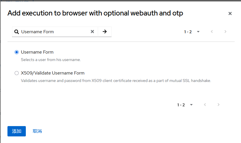 随后 点击添加执行器 搜索"Username Form" 添加一个用户名表格